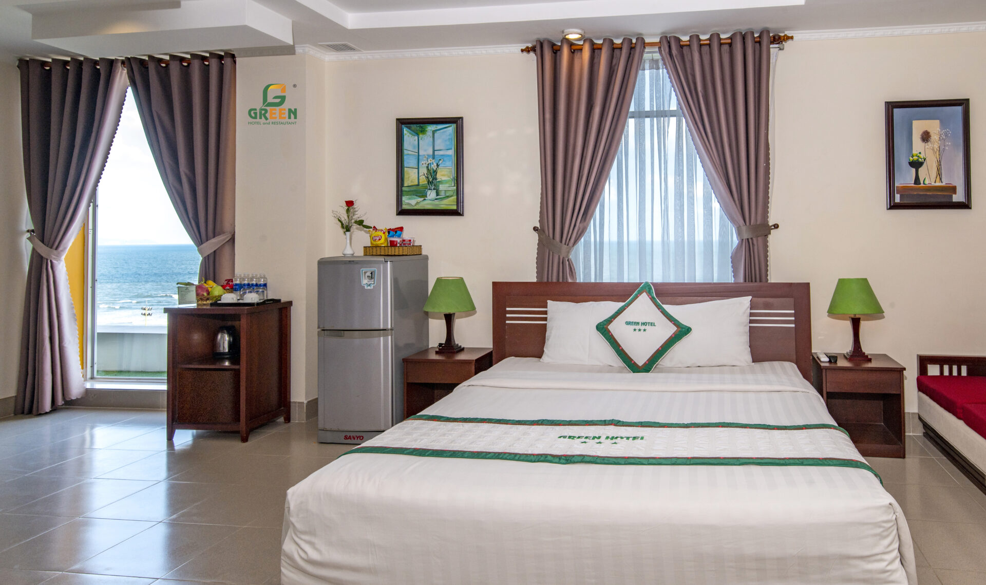 Tận hưởng tầm nhìn hướng biển hoặc thành phố từ ban công riêng. Green Hotel luôn sẵn sàng mang đến dịch vụ chu đáo, giúp bạn cảm nhận như đang ở chính ngôi nhà của mình.